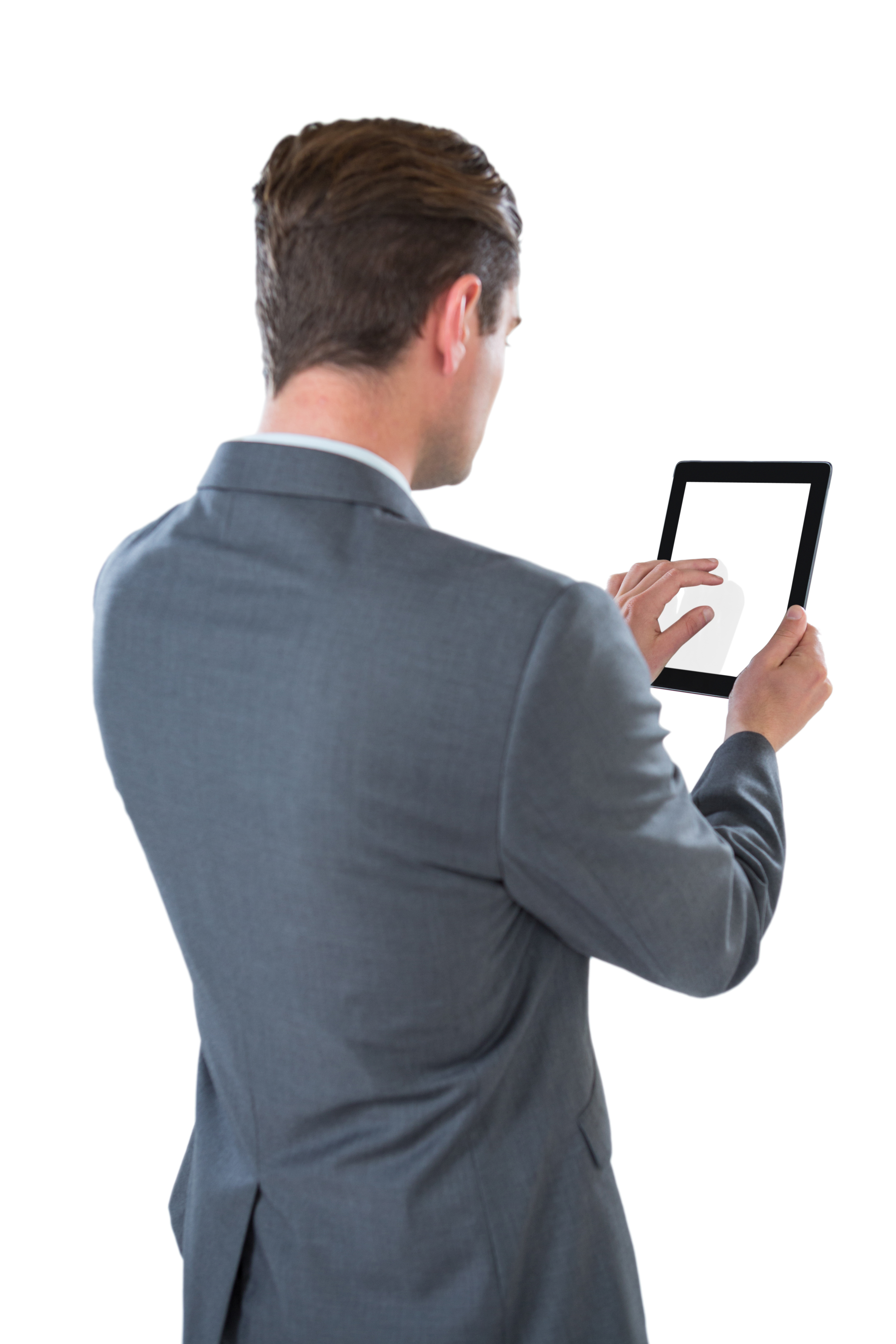 Rear view of businessman using a digital tablet