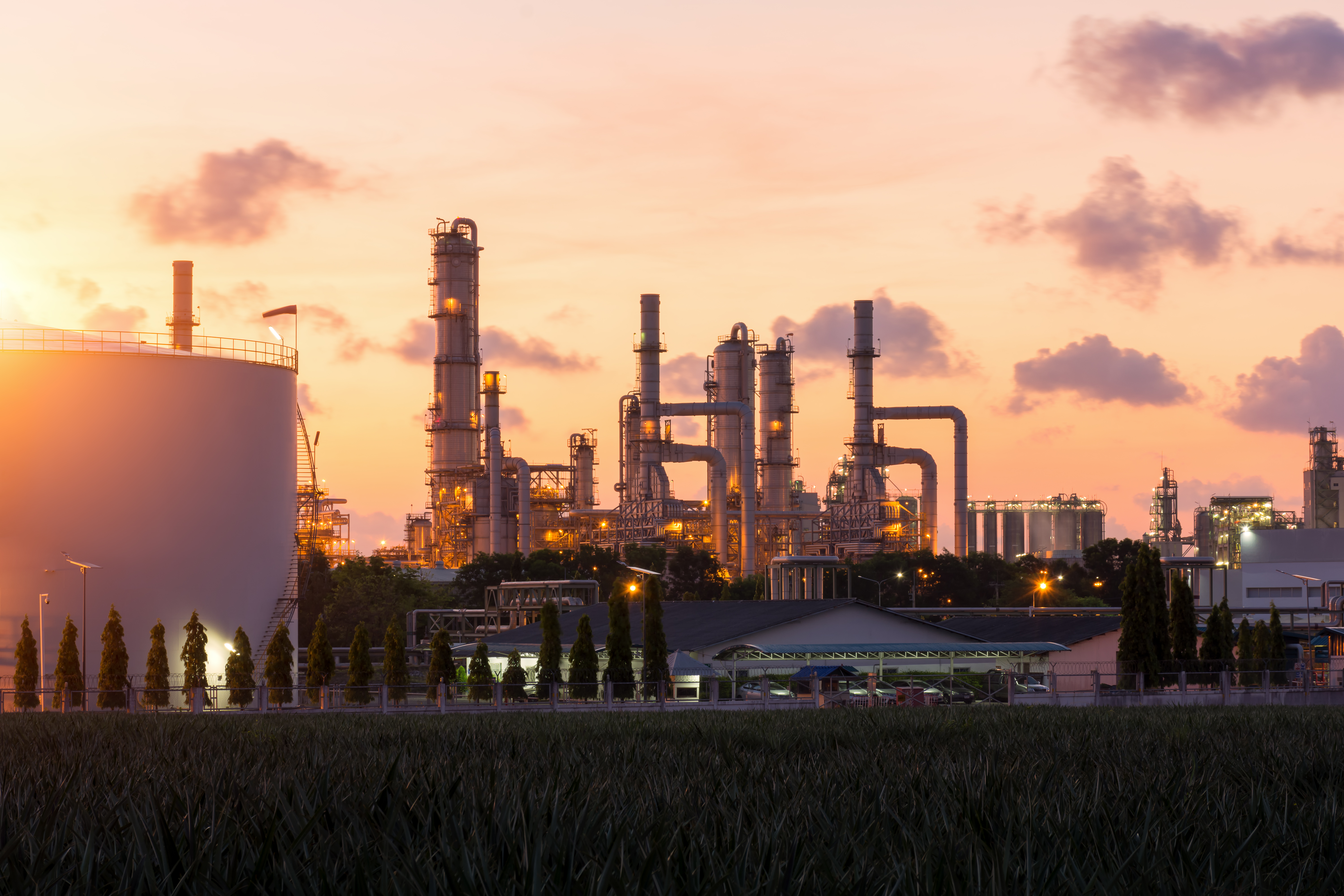 Oil Refinery factory at twilight , petrochemical plant , Petroleum , Chemical Industry